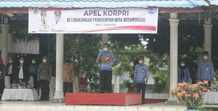 mediatotabuan.co, Kotamobagu – Pemerintah Kota (Pemkot) Kotamobagu, menggelar Apel Korps Pegawai Republik Indonesia (KORPRI) di lapangan Hotinimbang Kotamobagu, Senin (17/01).