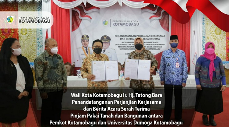 Terkini, Pemkot Kotamobagu menyerahkan asetnya yaitu eks kantor Bupati Bolmong dalam bentuk pinjaman pakai kepada Universitas Dumoga Kotamobagu (UDK) untuk proses perkuliahan, Senin (17/01).