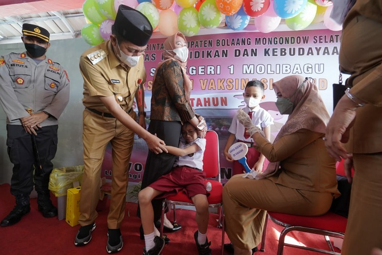 mediatotabuan.co, Bolsel – Mohamad Regiansyah Kamaru, putra Bupati Bolaang Mongondow Selatan (Bolsel), Hi Iskandar Kamaru, jalani tahapan vaksinasi anak usia 6-11 tahun, yang dilaunching di Sekolah Dasar Negeri (SDN) 1 Molibagu, Senin (24/01).