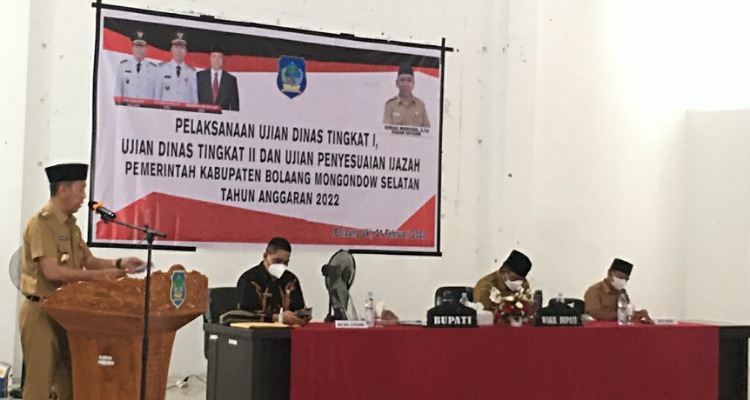 mediatotabuan.co, Bolsel – Pemerintah Kabupaten (Pemkab) Bolaang Mongondow Selatan (Bolsel), menggelar ujian dinas tingkat I dan II serta ujian penyesuaian ijazah bagi Aparatur Sipil Negara (ASN) tahun 2022, Senin (21/02).