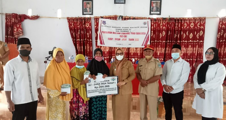 mediatotabuan.co, Bolsel – Pemerintah Desa (Pemdes) Tolondadu I, Kecamatan Bolaang Uki, Kabupaten Bolaang Mongondow Selatan (Bolsel) menyalurkan Bantuan Langsung Tunai (BLT) Dana Desa (DD) untuk tahun 2022 kepada 80 Kepala Keluarga (KK), Selasa (22/02).Penyaluran BLT DD tersebut dua tahap, yakni periode Januari dan Februari 2022, yang dihadiri langsung oleh Camat Bolaang Uki Nurhaeda Yasin.