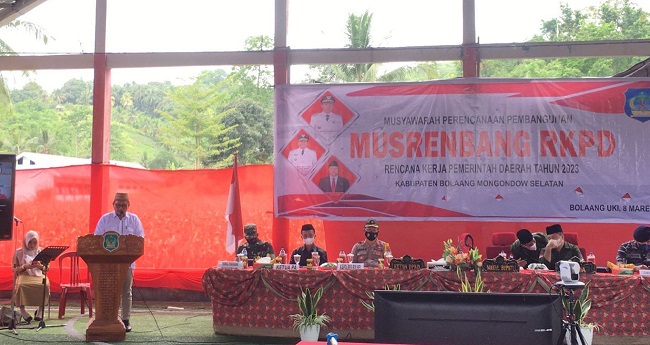 mediatotabuan.co, Bolsel – Ketua Dewan Perwakilan Rakyat Daerah (DPRD) Kabupaten Bolaang Mongondow Selatan (Bolsel), Arifin Olii, menyampaikan pokok-pokok pikiran (pokir) saat Musyawarah Rencana Pembangunan (Musrenbang) Rencana Kerja Perangkat Daerah (RKPD) Bolsel tahun 2023.