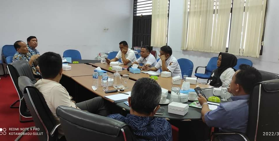 Agenda membahas terkait Penanganan Ekonomi Nasional (PEN) di tingkat daerah dan peran perbankan khususnya Bank Rakyat Indonesia (BRI) dalam pemberian Kredit Usaha Rakyat (KUR) kepada UMKM dan IKM bagian dari pemilihan ekonomi ini, dilaksanakan di ruang Banmus DPRD Kotamobagu.