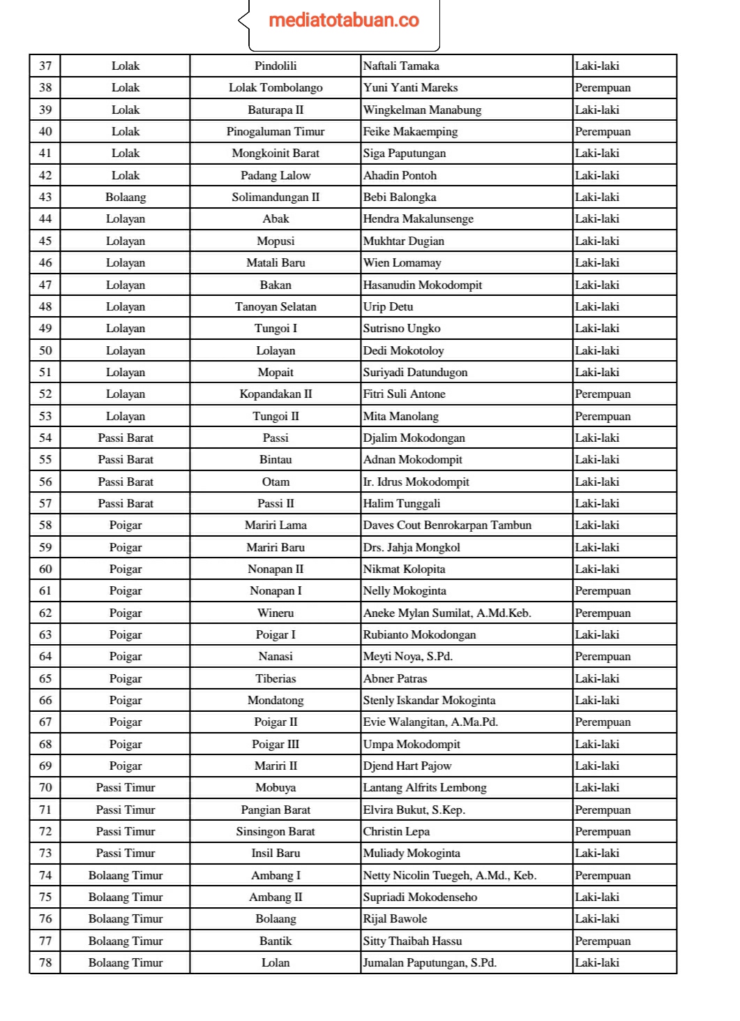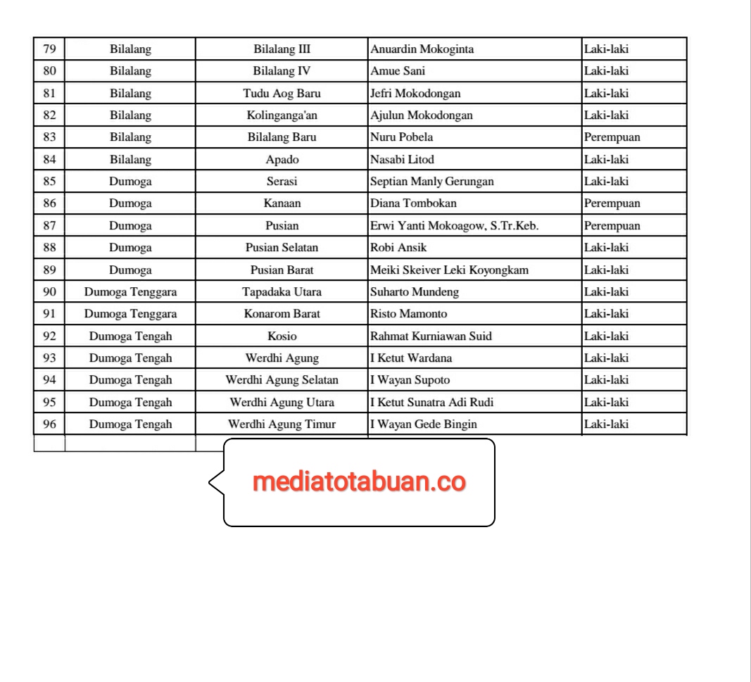 Ini daftar lengkap sangadi yang dilantik dan diambil sumpah: