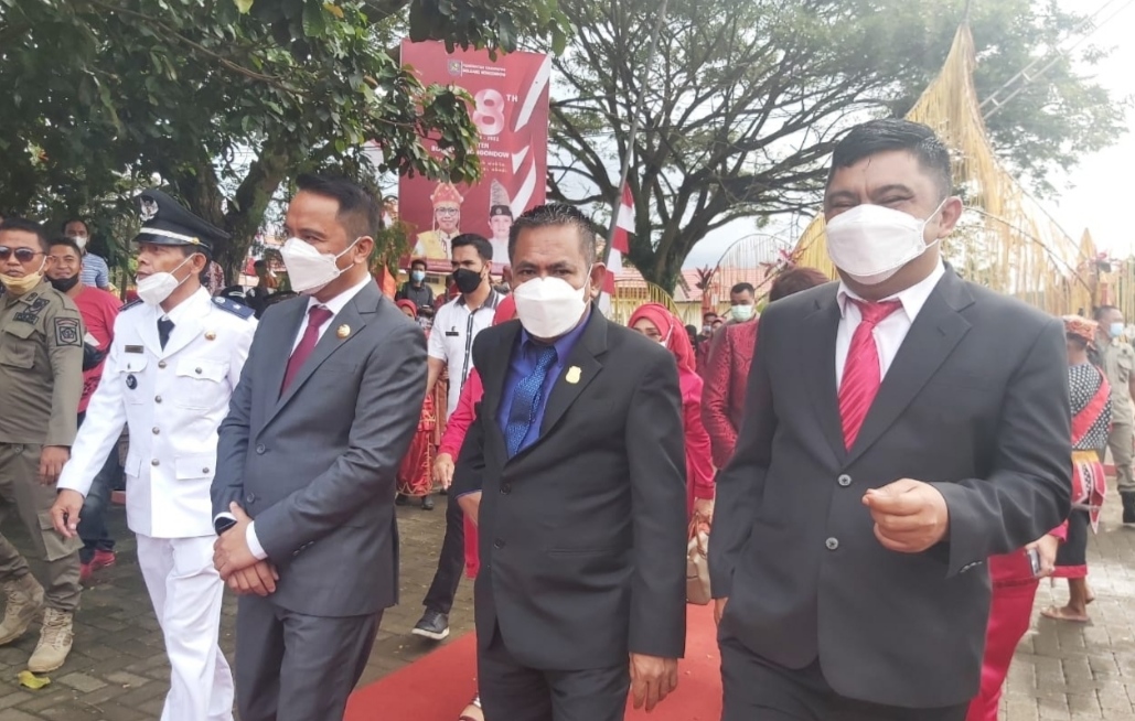 Ketua DPRD Kotamobagu ini pun hadir di agenda upacara HUT Kabupaten Bolmong yang Inspektur Upacara (Irup) Bupati Bolmong, Dra Hj Yasti Soepredjo Mokoagow, di halaman kantor Sekretariat Daerah (Setda) Bolmong, lalu rapat paripurna istimewa oleh DPRD Bolmong yang dipimpin Ketua Dewan Welty Komaling, dan ramah tamah di Rumah Jabatan (Rujab) Bupati Bolmong.