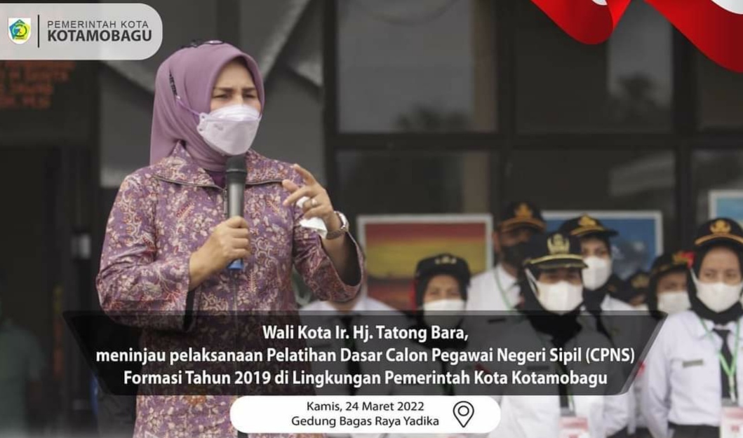mediatotabuan.co, Kotamobagu – Wali Kota Kotamobagu, Ir Hj Tatong Bara, meninjau pelaksanaan Pelatihan Dasar (Latsar) Calon Pegawai Negeri Sipil (CPNS) di jajaran Pemerintah Kota (Pemkot) Kotamobagu, Kamis (24/03).