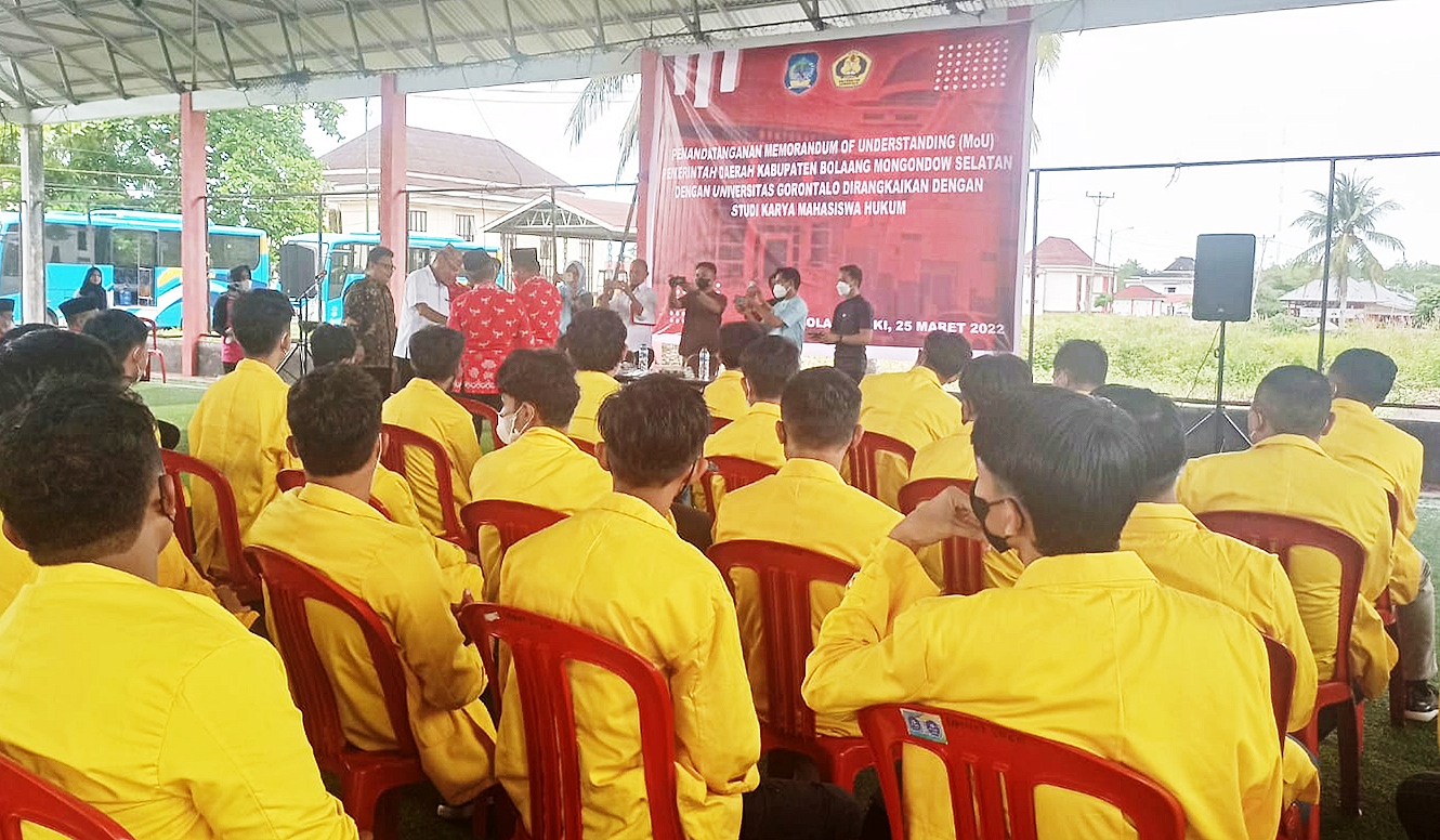 Hal ini disampaikan Rektor UG, Dr. Ibrahim Ahmad, SH., MH. dalam sambutannya seusai menandatangani nota kesepahaman atau MoU dengan Pemerintah Kabupaten (Pemkab) Bolsel, yang digelar di lapangan futsal perkantoran Panango, Jum’at (25/03).