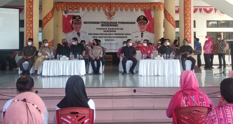 mediatotabuan.co, Bolmong – Pemerintah Kabupaten (Pemkab) Bolaang Mongondow (Bolmong), menggelar kegiatan Musyawarah Perencanaan Pembangunan (Musrenbang) Tingkat Kabupaten Dalam Rangka Penyusunan Rencana Kerja Pemerintah Daerah (RKPD) Kabupaten Bolmong Tahun 2023, Kamis (31/03)