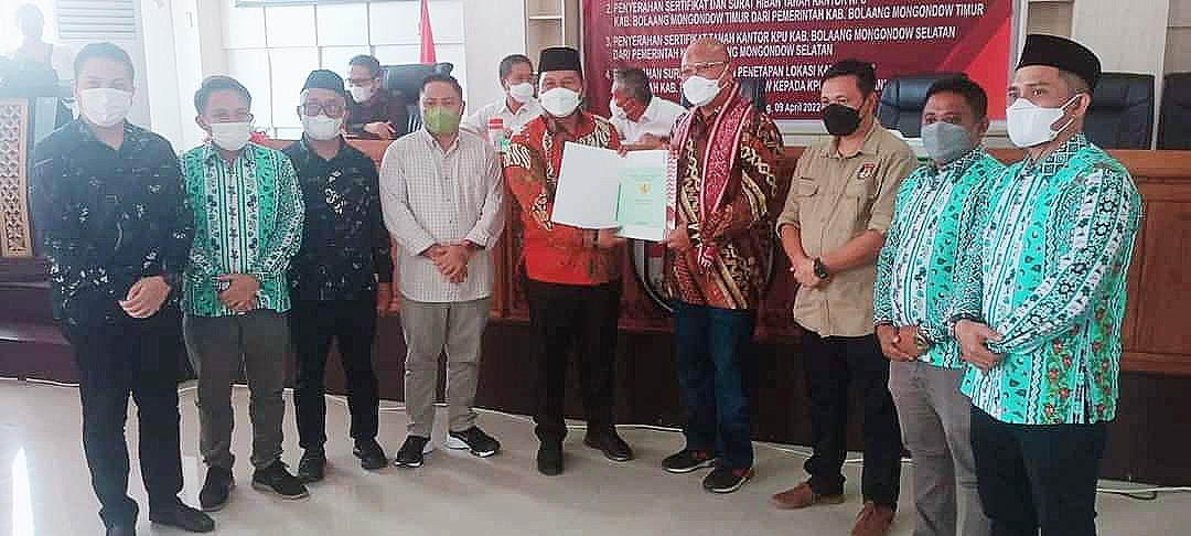 Sementara itu, Wabup Bolsel, Deddy Abdul Hamid mengatakan, penyerahan sertifikat dan surat hibah lahan merupakan bentuk dukungan pemerintah daerah kepada KPU Bolsel.