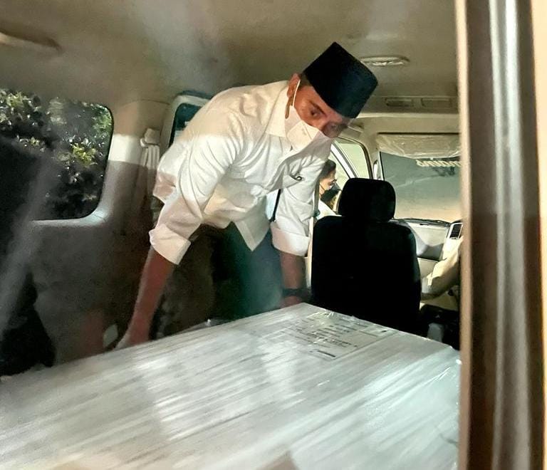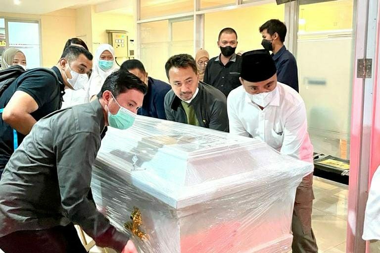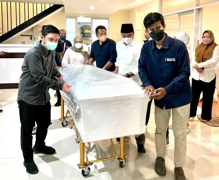 Selain mendoakan jenazah almarhum agar mendapat tempat yang layak di sisi Allah SWT, bupati juga ikut bersama keluarga mengangkat peti jenazah ke dalam ambulance menuju pesawat untuk diberangkatkan ke Manado.
