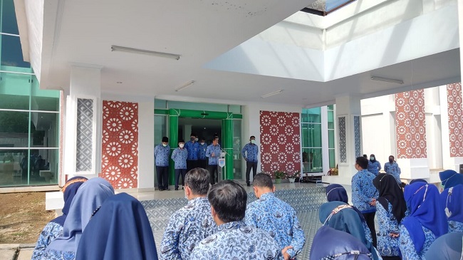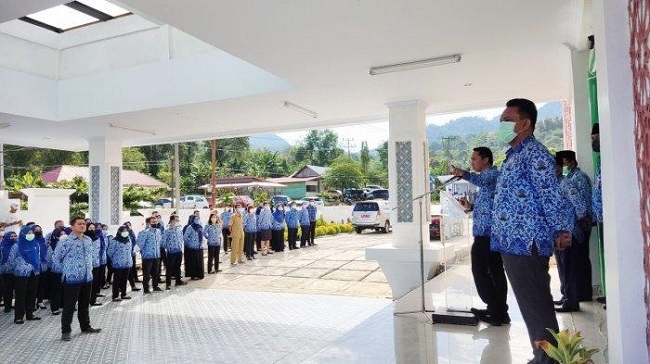 Halaman Rumah Sakit Daerah (RSD) Ambang Pratama, dijadikan tempat untuk pelaksanaan yang dihadiri Aparatur Sipil Negara (ASN). Kali ini SSM lebih menekankan pengabdian pegawai negeri khusus tenaga kesehatan. Dia katakan pentingnya Trimatra pengabdian.
