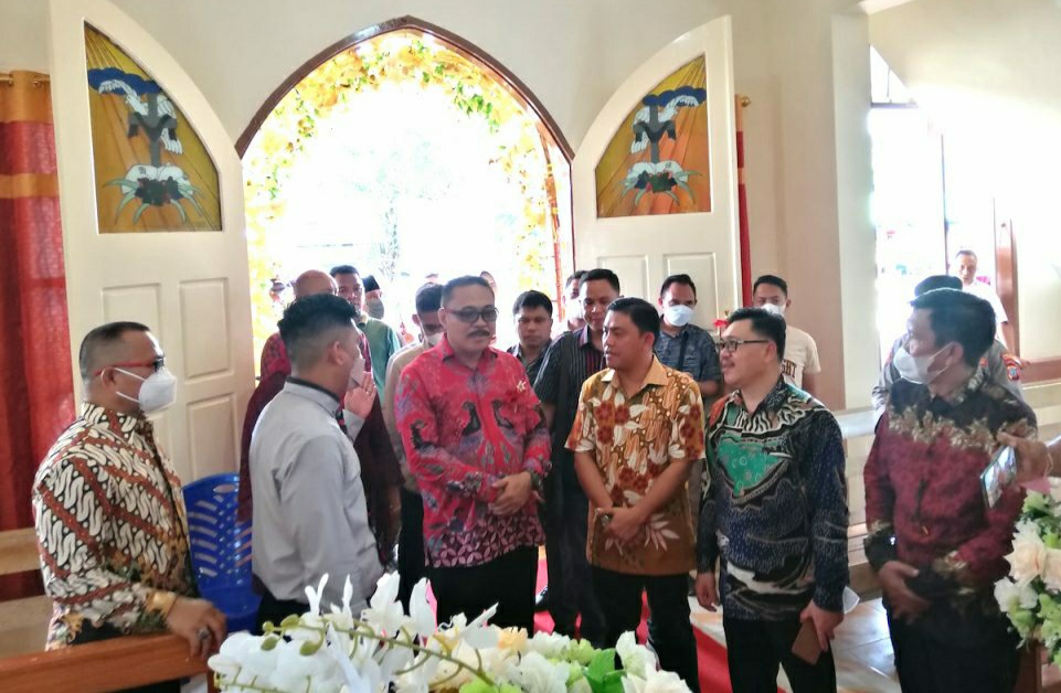 mediatotabuan.co, Bolmong – Penjabat (Pj) Bupati Bolaang Mongondow (Bolmong), Ir Hi Limi Mokodompit MM, menghadiri sekaligus resmikan gedung Gereja Jemaat Eben Haezer, Labuan Uki, Kecamatan Lolak, Kamis (26/05/2022).
