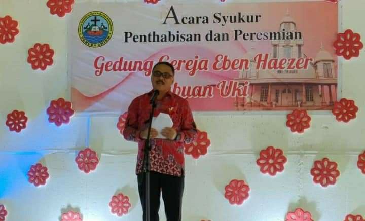 Sementara itu, Pj Bupati Bolmong, Ir Hi Limi Mokodompit MM, dalam sambutannya menyampaikan ucapan selamat dan penghargaan serta apresiasi kepada panitia pelaksana pembangunan gereja dan segenap jemaat gereja Eben Haezer Labuan Uki, atas perjuangan kerja keras yang dilandasi iman dan percaya pada Tuhan sehingga gedung ini dapat diresmikan.