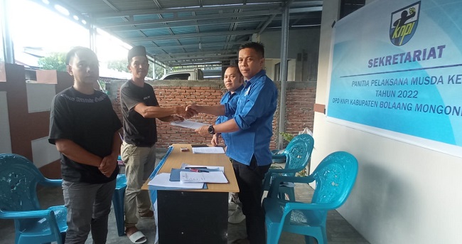 mediatotabuan.co, Boltim — Dua bakal calon Ketua Dewan Pimpinan Daerah (DPD) Komite Nasional Pemuda Indonesia (KNPI) Bolaang Mongondow Timur (Boltim), mengambil formulir pendaftaran calon di sekretariat panitia di Desa Paret, Jumat (3/06/2022).