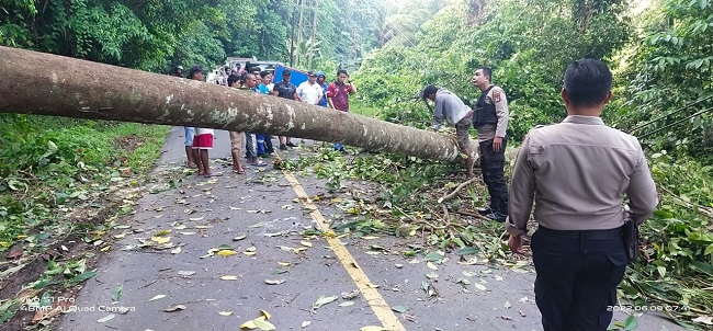 “Kami dapat laporan dari masyarakat adanya pohon tumbang dan langsung bergerak ke lokasi kejadian. Tidak ada korban jiwa atas peristiwa ini,” kata KBO Samapta Polres Bolsel, IPDA Didik Kustiyana.