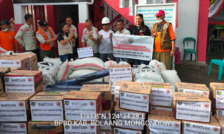 Penyerahan bantuan oleh BPBD Bolmong ini, dilakukan di Posko Peduli Bencana Minsel di Kelurahan Lewet, Kecamatan Amurang, Minsel.