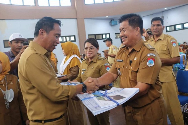 Dalam agenda penyerahan Surat Pemberitahuan Pajak Terutang (SPPT) dan Daftar Himpunan Ketetapan Pajak (DHKP) serta Pajak Bumi Bangunan Pedesaan dan Perkotaan (PBB-P2) tahun 2022 yang dilaksanakan di Aula Kantor Bupati lantai III, pada Selasa (21/6/2022) oleh Bupati Boltim Sam Sachrul Mamonto, kepada camat dan sangadi se-Boltim.