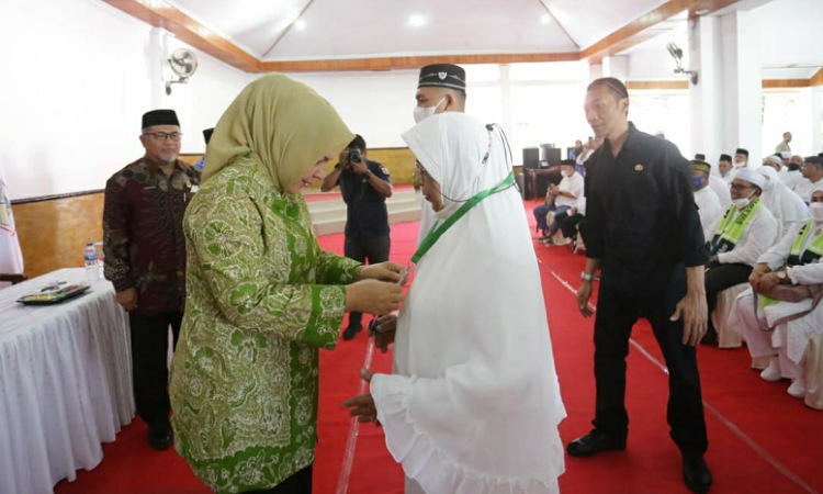 meditotabuan.co, Kotamobagu – Wali Kota Kotamobagu Ir Hj Tatong Bara, melepas rombongan Calon Jemaah Haji (CJH) asal Kota Kotamobagu, Kamis (23/06/2022).