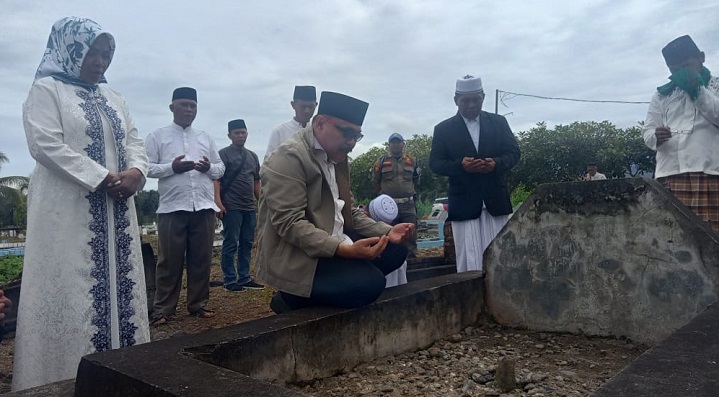 Usai rangkaian Idul Adha 1443 hijiriah di halaman Masjid Masjid Nurul Yaqin Desa Ibolian ini, Pj Bupati didampingi keluarga dan rombongan, melakukan ziarah kubur.