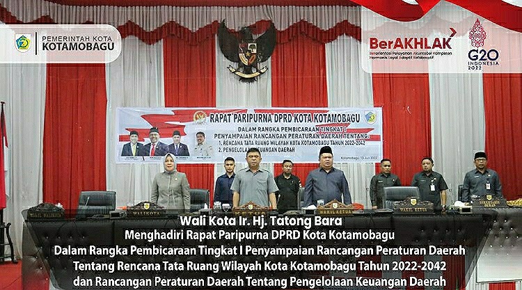 Rapat paripurna dua Ranperda yang dipimpin Ketua DPRD Kotamobagu, Meiddy Makalalag didampigi Wakil Ketua Syariffudin Mokodongan ini yakni Ranperda tentang Tata Ruang wilayah Kota Kotamobagu Tahun 2022-2042, dan Pengelolaan Keuangan Daerah.