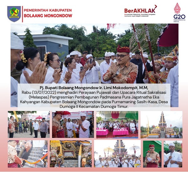 mediatotabuan.co, Bolmong – Penjabat (PJ) Bupati Bolaang Mongondow (Bolmong), Ir Limi Mokodompit MM, menghadiri acara Melaspas sekaligus meresmikan pembangunan Padmasana Pura Jagatnatha Eka Kahyangan di Desa Dumoga Dua, Kecamatan Dumoga Timur, Rabu (13/07/2022).