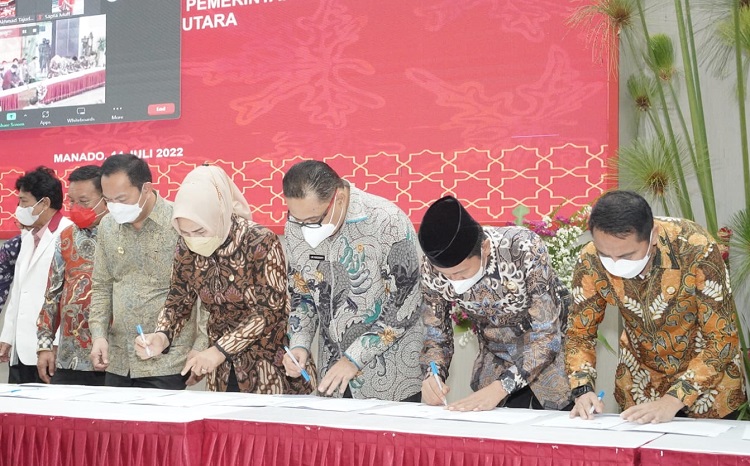 Diinformasikan, penandatanganan nota kesepahaman ini, selain dilakukan Pj Bupati Bolmong Ir Limi Mokodompit MM, juga dilakukan seluruh kepada daerah se-Sulut.