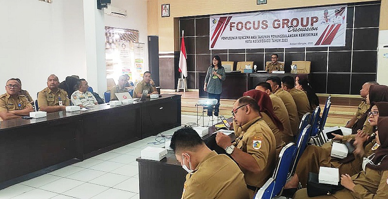 FGD penyusunan Rencana Aksi Tahunan (RAT) penanggulangan Kemiskinan Kota Kotamobagu Tahun 2023, dihadiri para pimpinan Organisasi Perangkat Daerah (OPD) dilingkungan Pemkot Kotamobagu.
