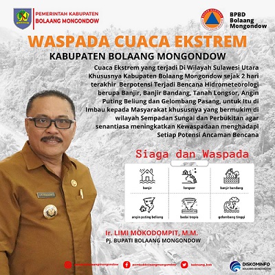Pasalnya, akhir-akhir ini wilayah Kabupaten Bolmong dan sekitarnya mengalami cuaca ekstrim berupa hujan lebatdi sertai angin dan petir yang diprediksi berpotensi tejadinya bencana.