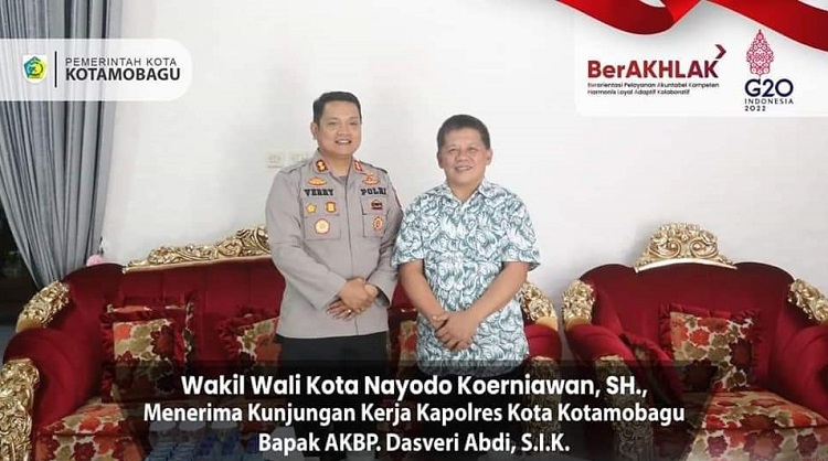 mediatotabuan.co, Kotamobagu – Wakil Wali Kota Kotamobagu, Nayodo Koerniawan SH, menerima Kunjungan Kerja (Kunker) Kepala Kepolisian Resor (Kapolres) Kotamobagu, Ajun Komisaris Besar Polisi (AKBP) Dasveri Abdi SIK, Selasa (19/07/2022).