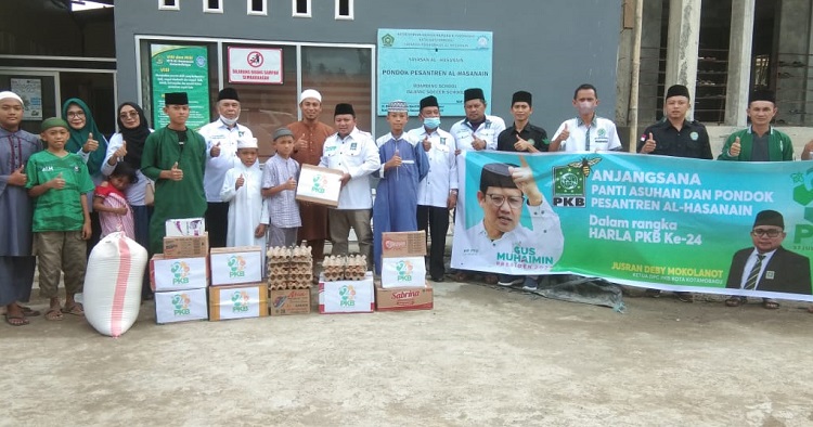 Pada agenda ini, DPC PKB Kotamobagu menyerahkan bantuan sejumlah kebutuhan pesantren Al-Hasanain dan Panti Asuhan Ar-Rahman.