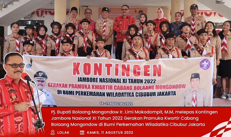 mediatotabuan.co, Bolmong – Pejabat (Pj) Bupati Bolaang Mongondow (Bolmong) Limi Mokodompit MM, melepas Kontingen Gerakan Pramuka Kwartir Cabang Bolmong untuk mengikuti Jambore Nasional Ke-VI, Kamis (11/08/2022).