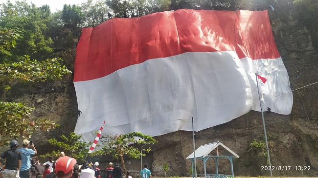 Pengibaran bendera raksasa berukuran 50×30 meter di kawasan wisata itu dalam rangka memeriahkan Hari Ulang Tahun (HUT) ke-77 Kemerdekaan Republik Indonesia.