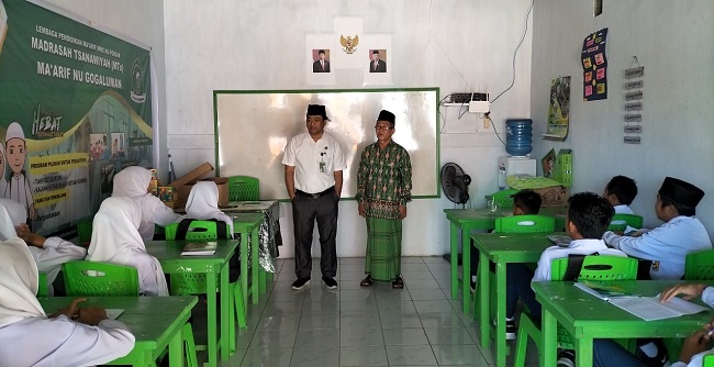 Ahmad Sholeh juga sempat meninjau proses kegiatan belajar mengajar di MTs Ma’arif Gogaluman saat itu.