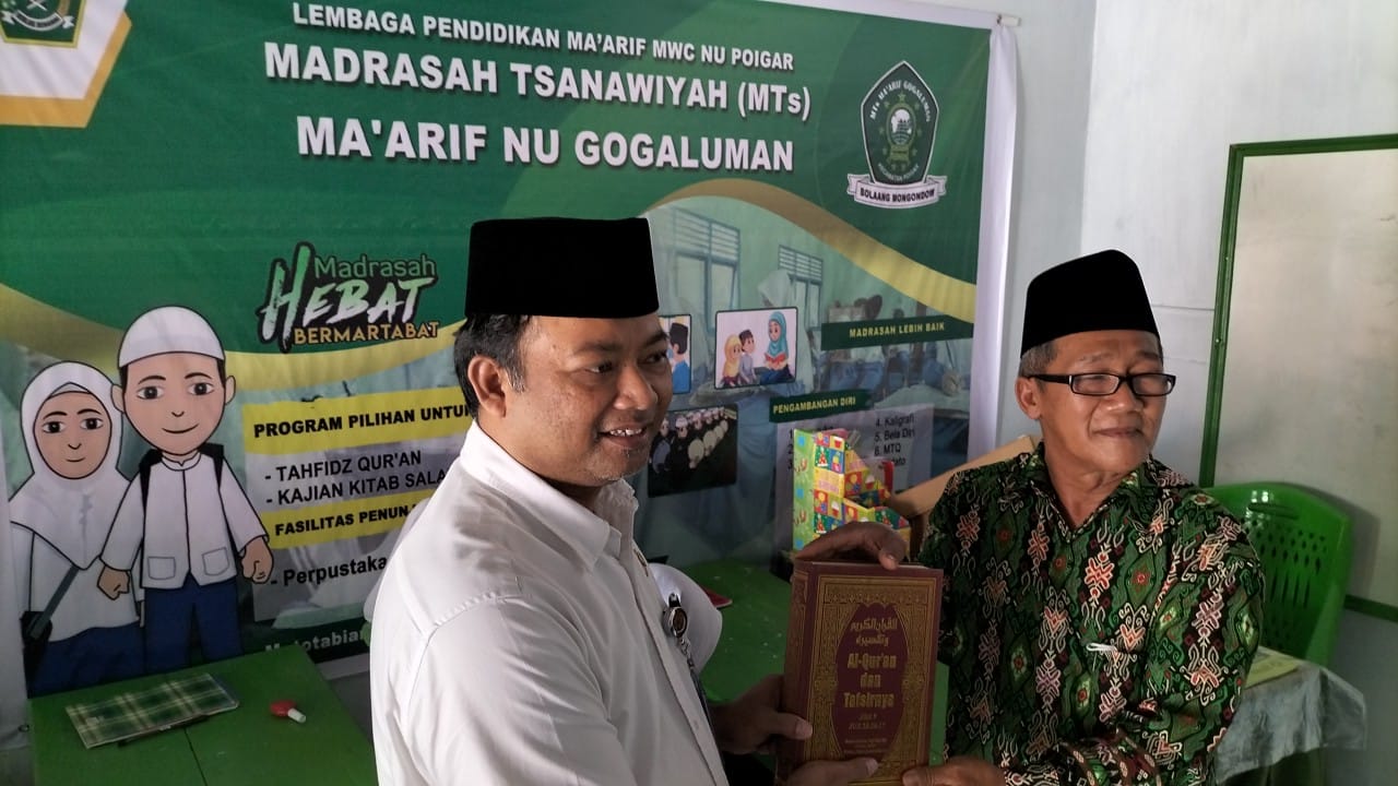 Ahmad Sholeh diterima Ketua MWC NU Poigar, Ustadz Hi. Ade Mamonto S.Ag, di gedung sekolah, kompleks masjid Almuqarromah Desa Gogaluman, Kecamatan Poigar Kabupaten Bolmong.