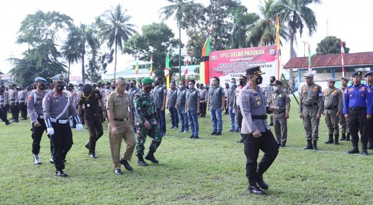 Apel pasukan yang diikuti berbagai instansi ini, dilaskanankan dalam rangkan pengamanan Pemilihan Sangadi (Kepala Desa) Serentak di Kota Kotamobagu.