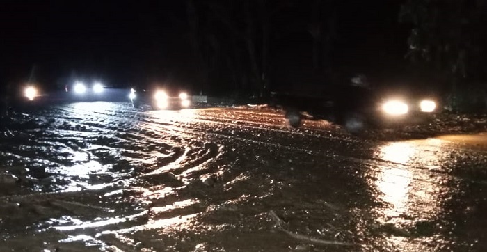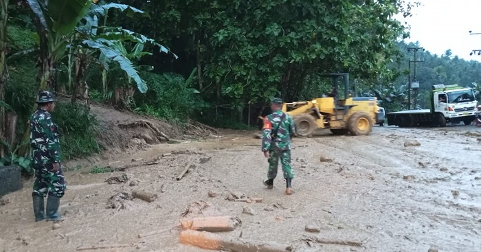 Kondisi terakhir Senin malam ini, jalan masih tersisa material longsor. (Foto: Dok Koramil Passi)