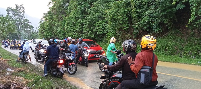 Jalan AKD Desa Inuai Tertimbun Longsor, Terjadi Kemacetan Lalu Lintas