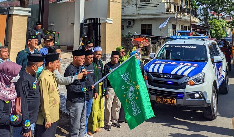 KIRAB Santri dilepas Kepala Kantor (Kakan) Kementerian Agama (Kemenag) Sulut, Hi Sarbin Sehe SAg MPdI, sekitar pukul 07.00 WITA dan Finish di Kampung Ketang, Manado.