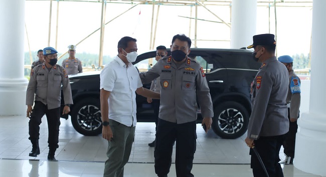 Setelah berbincang-bincang, Irjen Pol Mulyatno bersama bupati memantau langsung pembangunan Mapolres Boltim yang sedang dalam pengerjaan.