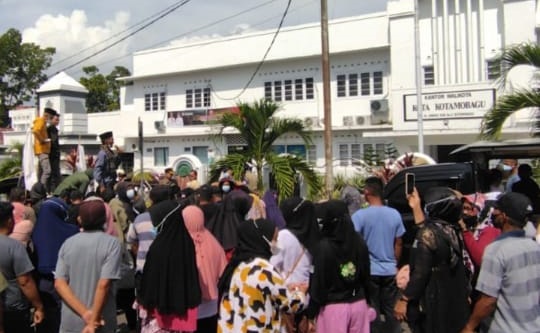 Aksi unjuk rasa penolakan hasil Pilsang Desa Bilalalang Satu ini, dilaksanakan di halaman kantor Sekretariat Daerah (Setda) Kota Kotamobagu, Senin (24/10/2022).