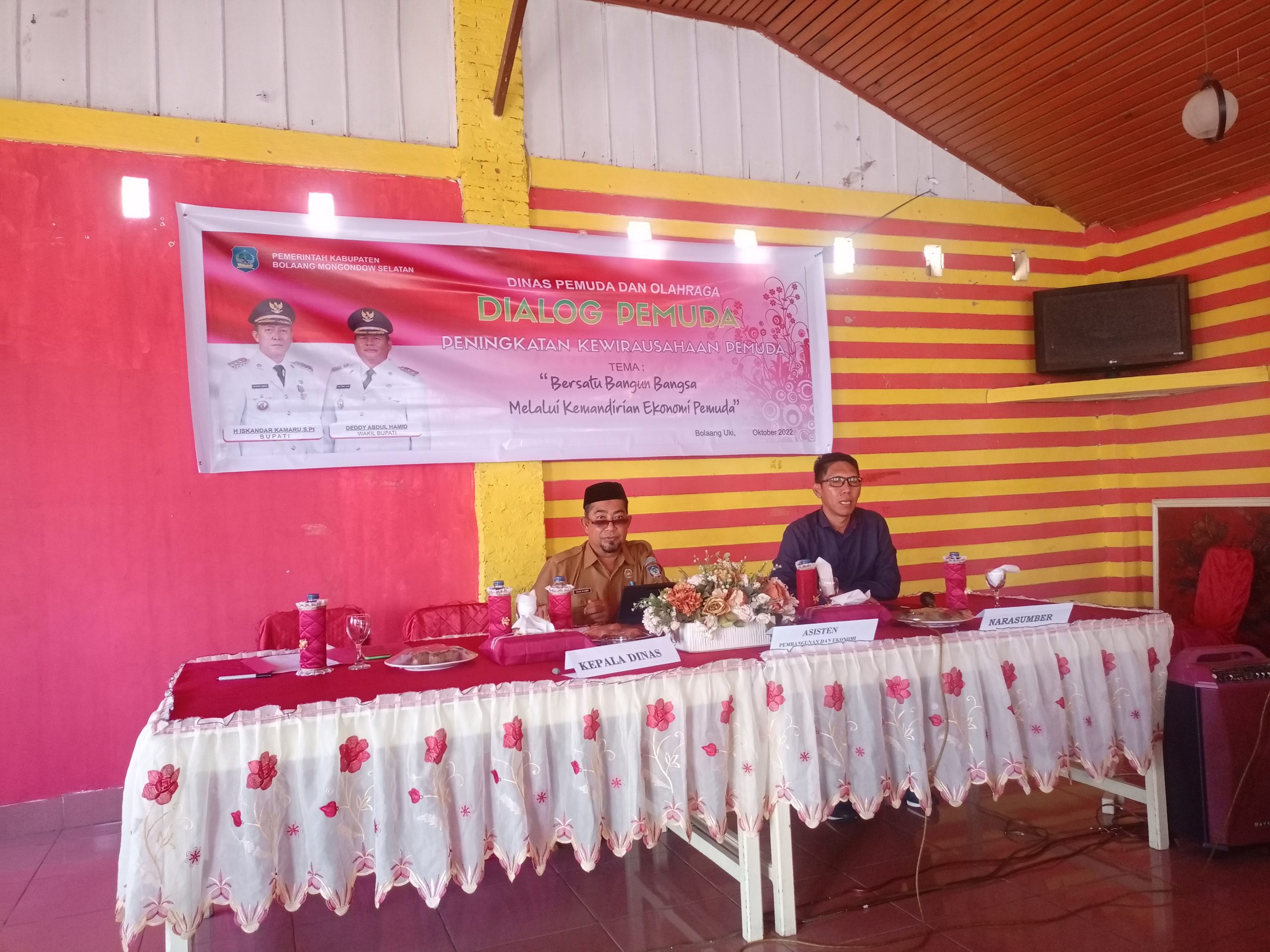 mediatotabuan.co, Bolsel — Ketua Komisi II DPRD Kabupaten Bolaang Mongondow Selatan (Bolsel) mengahdiri sekaligus memberikan materi dialog kepemudaan dengan tema “bersatu membangun bangsa melalui kemandirian ekonomi pemuda”, Selasa (25/10).