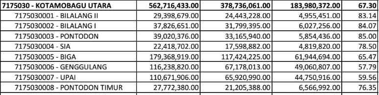| 2 | BILALANG I | 37,826,651.00 | 31,799,395.00 | 6,027,256.00 | 84.07 |