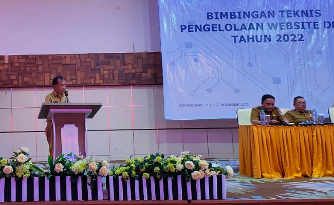 mediatotabuan.co, Boltim – Mewakili Bupati Bolaang Mongondow Timur (Boltim) Sekretaris Daerah (Sekda) membuka kegiatan Bimbingan Teknis (Bimtek) Pengelolaan Website Desa yang diselenggarakan oleh Dinas Komunikasi dan Informasi (Diskominfo) Boltim, di Hotel Sutan Raja Kotamobagu. Senin (21/11/2022).