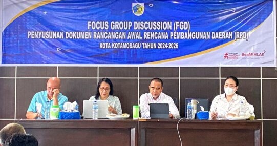 FGD penyusunan dokumen rancangan awal Rencana Pembangunan Daerah (RPD) tahun 2024-2026 ini, dipimpin Kepala Bappelitbangda Kotamobagu, Adnan Massinae SSos MSi.