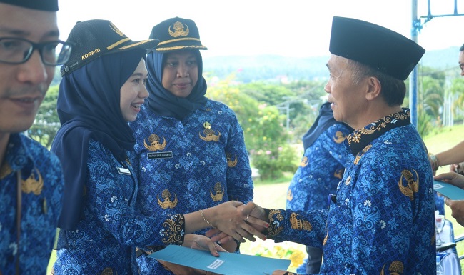 “Jadilah seorang PNS yang luwes, mudah bergaul, mudah bersahabat. Banyak bersahabat, maka Anda akan mendapatkan banyak ilmu,“ ujar bupati Sachrul.