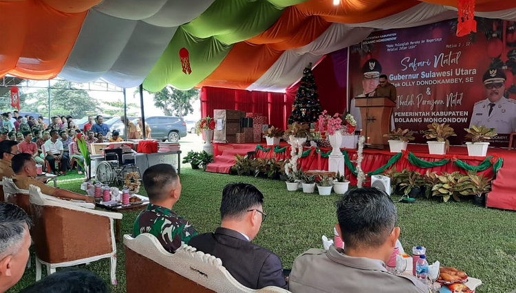 Safari Natal dan Ibadah Perayaan Natal oleh Pemerintah Kabupaten (Pemkab) Bolmong ini dihadiri Dandim 1303/Bolmong Letkol Inf Topan Angker Ssos, mewakili Kapolres Kotamobagu Kompol Romel Pontoh, Ketua DPRD Bolmong Welty Komaling, Ketua Sinode GMIBM Pdt Fekky Kamasaan Sth, Ketua WKI Sinode GMBIM Julin E Papuling SKM ME.