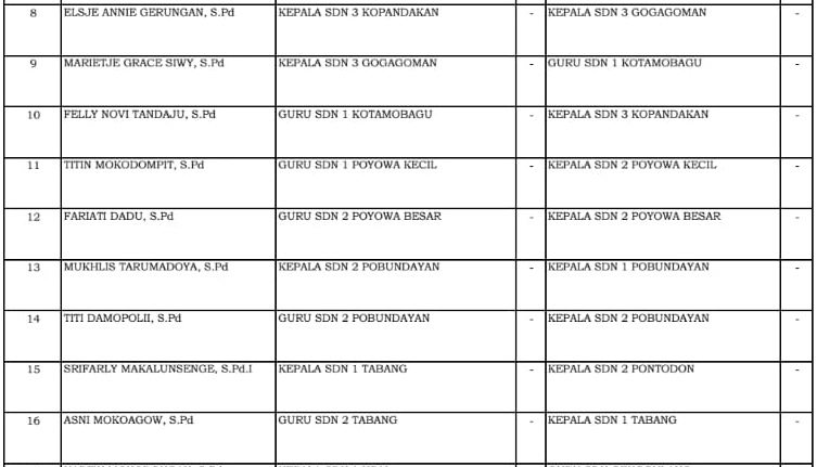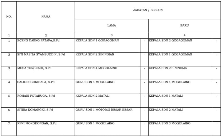 TB-NK “Goyang” 21 Posisi Kepsek di Kotamobagu, Ini Selengkapnya