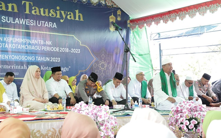 mediatotabuan.co, Kotamobagu – Wali Kota Kotamobagu, Ir Hj Tatong Bara, menghadiri Tabligh Akbar dalam rangka Syukuran 4 Tahun Kepemimpinan Ir Hj Tatong Bara dan Nayodo Koerniawan SH (TB-NK) dan mengakhiri Tahun 2022 serta menyongsong Tahun 2023, Kamis (29/12/2022).