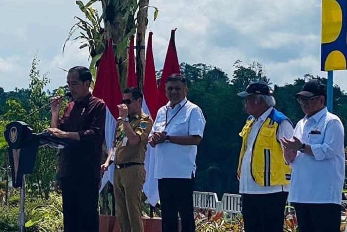 Presiden didampingi Gubernur Sulut, Olly Dondokambey dan Bupati Minahasa Utara Joune Ganda.