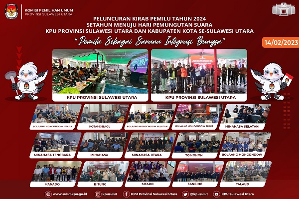 mediatotabuan.co, Sulut – Komisi Pemilihan Umum (KPU) Provinsi Sulawesi Utara (Sulut), melaksanakan Peluncuran Kirab Pemilu 2024, Selasa (14/02/2023).